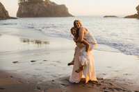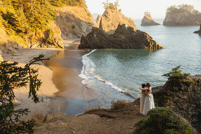 The adventure wasn’t over, a few more minutes drive brought us to a beautiful beach on the Oregon coast. These two hiked down the trail together, until the trail opened up to an incredible view of the ocean. They stood together for a few minutes overlooking the ocean, just an hour before sunset, drinking it all in.