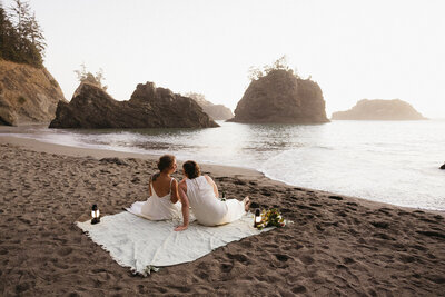 The Milky Way sparkle over the ocean and these two lovers to end a beautiful day eloping on the Oregon Coast.