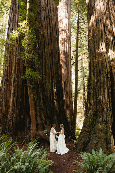 Our first stop was a beautiful lush trail in a grove of giant redwoods. The light poured through the forest as they wandered through the grove, hand in hand. We took photos along the way until we came to a spot among some of the massive trees where K + M shared their vows. They spent time exploring the forest together and we captured some beautiful photos.